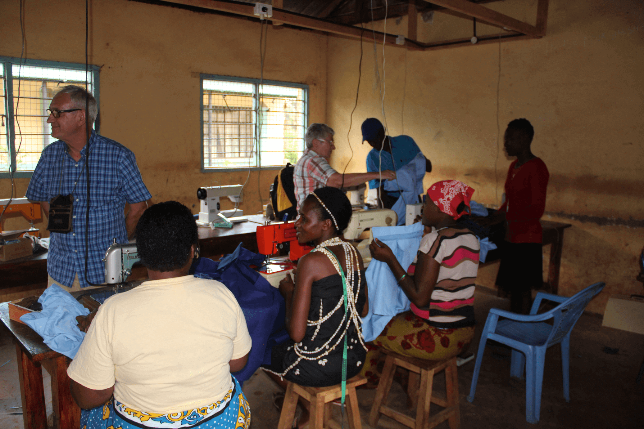 Bei der Sammelaktion, die der Verein im Jahr 2015 durchführte wurden vor allen Dingen Nähmaschinen und landwirtschaftliche Geräte gesammelt. Durch den Kontakt mit Joel Okumu, Eliud’s Bruder, wurde die Idee geboren in Kenia Frauen, die eine Ausbildung als Näherinnen absolvierten und keine Nähmaschine finanzieren können, zu unterstützen. So wurden 10 Nähmaschinen aus dem ersten Container nach Kenia gebracht, um im Vocational Training Center in Njoro eine Frauengruppe einzurichten. Außerhalb des Schulbetriebes konnten sich die Frauen treffen und die Räumlichkeiten der Schule nutzen um mit Näharbeiten Geld zu verdienen. Nach einiger Zeit spalteten sich 5 Frauen der Gruppe ab, um in Taveta auf dem Markt einen kleinen Raum zu mieten, in dem sie nähen konnten. Sie sahen hier größere Nachfrage nach Ihrer Arbeit. Das Geschäft der 5 Frauen läuft nach wie vor sehr gut. Sie können Geld für ihre Familien verdienen.